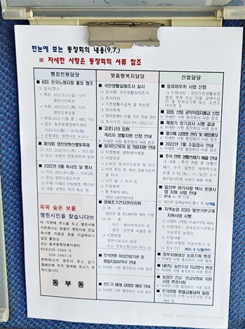영천시 동부동, 한장으로 보는 통장회의 자료