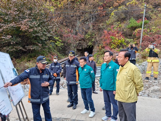 이날 현장에서 박 군수는 구조작업 진행 상황 등을 점검하며 구조활동에 매진 중인 관계자들을 격려하고, 구조대원들이 안전하게 구조 활동에 임하도록 당부했다.