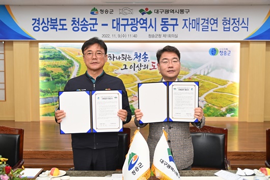 [청송=경북IT뉴스] 청송군은 대구광역시 동구와 지난 9일 청송군청 제1회의실에서 자매결연 협정식을 가졌다.