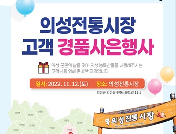 [의성=경북IT뉴스] 의성군은 오는 12일 한해를 마무리하는 시기를 맞아 의성전통시장에서 고객사은 대축제를 개최한다고 밝혔다.