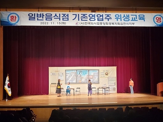 이에 김천시는 기존 강의로 진행되던 주입식 교육방법을 탈피하고 영업장에서 실제 발생할 수 현실적인 문제와 식품위생법령을 함께 구성한 연극 공연 방식으로 위생교육을 진행해 영업자들의 공감대를 확산시키며 큰 호응을 얻었다.