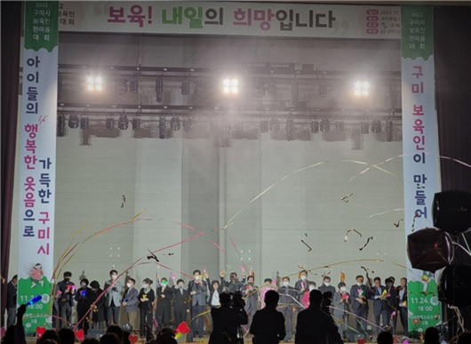 [구미=경북IT뉴스] 구미시어린이집연합회(회장 권인옥)가 11월 24일 구미시복합스포츠센터에서 구미시어린이집 원장과 보육교직원 1,200여명이 참여한 가운데, ‘2022 구미시 보육인 한마음 대회’를 개최했다.