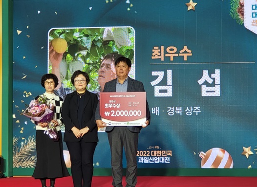 [상주=경북IT뉴스] ‘2022년 대한민국 대표과일 선발대회’에서 상주 배가 최우수상을 차지했다.