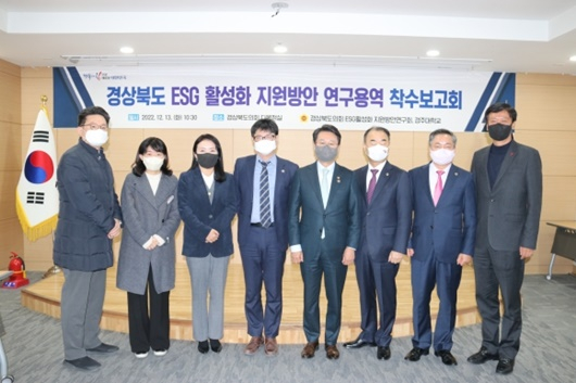 [경북=경북IT뉴스] 경상북도의회 ‘경상북도 ESG활성화 지원방안연구회’는 지난 13일 도의회 다목적실에서 ‘경상북도 ESG활성화 지원방안 연구용역’ 착수보고회를 개최했다.
