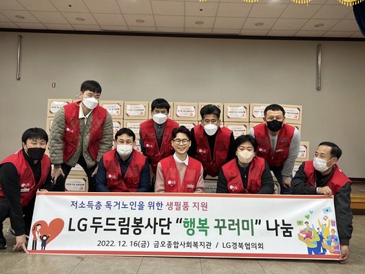 [구미=경북IT뉴스] LG경북협의회(회장 정철동)는 지난 16일 금오종합사회복지관에서 지역 저소득층 독거노인들을 위한 ‘LG와 함께하는 행복 꾸러미’ 제작 봉사활동을 실시했다. LG두드림봉사단과 가족이 함께 참여해 실시한 이날 봉사활동은 총 12종으로 구성된 생필품 행복꾸러미를 제작했다. 이날 제작한 행복꾸러미는 구미푸드마켓을 통해 저소득층 독거노인 100세대에 전달될 예정이다. 지난 2017년도부터 실시한 ‘LG와 함께하는 행복 꾸러미’는 구미푸드마켓을 이용하는 지역 위기가정에 약 6년간 누적 약 2,000여 만원(약 600여 세대) 상당의 생필품을 지원했다. 법등 금오종합사회복지관장은 “LG의 행복꾸러미가 저소득층 독거노인들의 경제적 위기 해소 및 정서적 안정감을 제공할 것을 기대한다”고 소감을 밝혔다. LG경북협의회는 “물가 상승, 코로나 19로 다소 지치고 힘든 시기를 겪고 있지만, 주변의 어려운 이웃들에게 조금이나마 따뜻한 온기가 전달됐으면 한다”며, “23년도에도 LG는 지역 소외계층을 위한 다양한 사회공헌활동을 펼쳐, 따뜻한 지역사회 조성에 앞장설 수 있도록 노력하겠다”고 말했다.