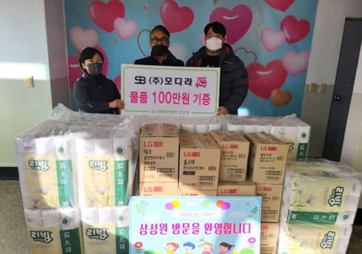[구미=경북IT뉴스] ㈜모디라 푸드트럭(대표 현충현)이 연말을 맞이하여 지난 14일, 구미 관내에 소재한 사회복지법원 삼성원을 방문해 1백만원 상당의 생필품을 전달해 훈훈한 미담이 되고 있다.