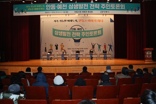[안동=경북IT뉴스] 안동시는 지난 21일 안동시청 대동관 영남홀에서 400여 명이 참석한 가운데 지속 가능한 도시로서 안동의 미래를 논의하기 위한 ‘안동‧예천 상생발전 전략 주민토론회’를 개최했다.