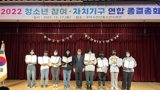 김장호 구미시장은 “청소년이 다양한 활동에 주체적으로 도전하고 참여해 건강하고 성실한 시민으로 성장할 수 있도록 청소년관련 시설 확충과 지원에 최선을 다하겠다”며 “내년에도 청소년 참여·자치기구의 활동을 기대한다”고 말했다.