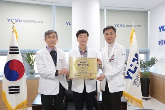 이관호 센터장, 김종연 의료원장, 신경철 병원장(좌로부터) | [경북IT뉴스] 영남대병원이 지난해 보건복지부와 국민건강보험공단으로부터 ‘2021년도 금연치료 협력 우수기관’으로 선정됐다