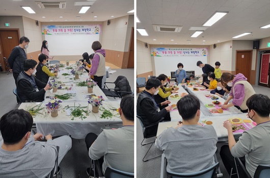 겨울 계절학교 프로그램 꽃꽂이활동은 꽃의 모양, 색이나 향기가 사람의 기분을 좋게 만들고 스트레스도 줄여주며, 요리활동은 창의력, 논리적 사고력, 인내심, 리더십 등에 기르며 각각 직접 만든 사람의 개성을 그대로 보여주는 프로그램을 구성해 즐겁게 참여 하고 있다.