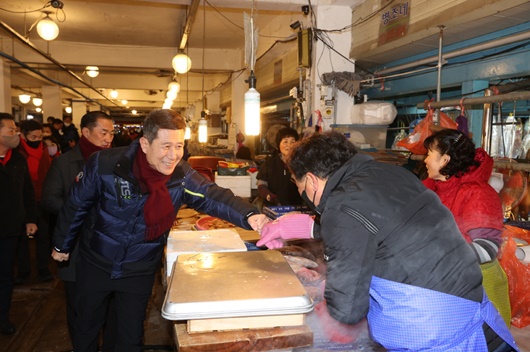 송도 활어어판장 및 죽도시장 찾아 상인 의견 청취 및 설 명절 덕담 나눠