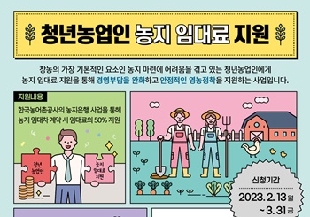 지원대상자로 최종 선정되면 한국농어촌공사와 약정을 맺은 농지 임대료의 50%(연간 최대 200만원까지)를 3년간 지원받을 수 있다.