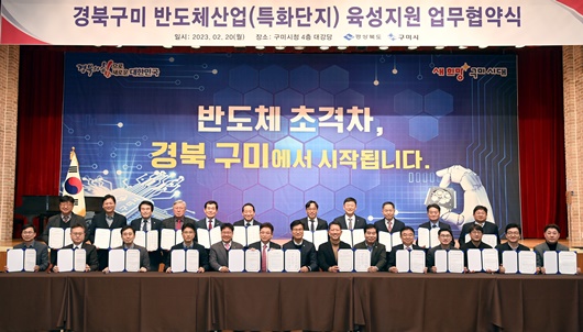 [경북=경북IT뉴스] 경북도는 20일 구미시청 대강당에서 반도체기업‧교육기관‧연구기관 등 80여명이 참석한 가운데 반도체 특화단지 유치 및 전문인력 양성을 위한 업무협약을 체결했다.