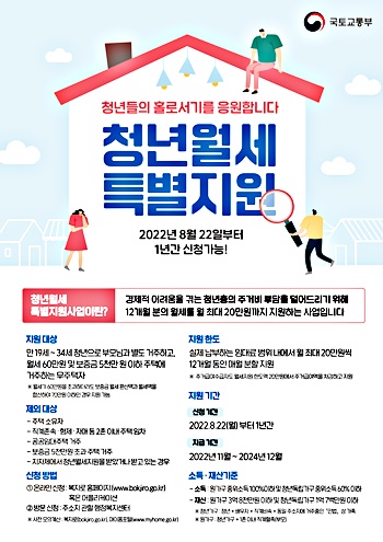 무주택 청년 월세 1년 간 월 최대 20만원 지원