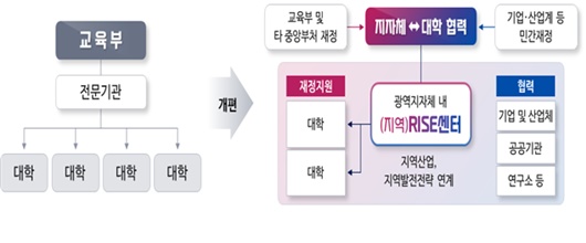 지역혁신중심대학 지원사업(RISE)은 지자체가 주도적으로 지역발전과 연계해 선택과 집중을 통해 지역대학에 투자할 수 있도록 지자체의 고등교육지원 권한을 확대하는 새로운 지원체계이다.