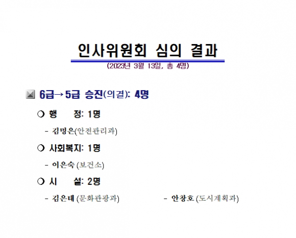 [칠곡=경북IT뉴스] 칠곡군은 13일자 총 4명에 대한 인사위원회 심의 결과를 발표했다