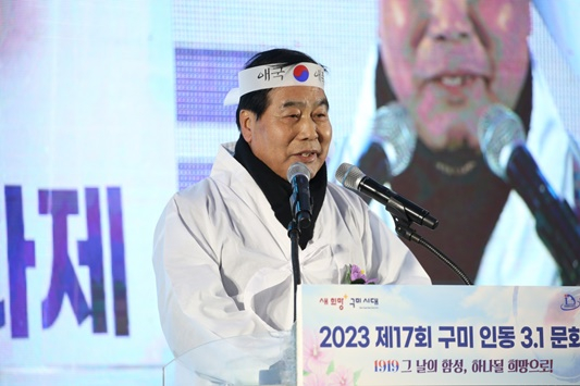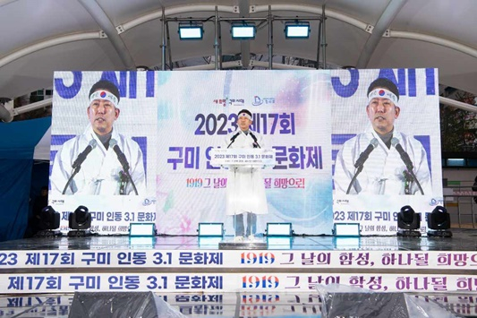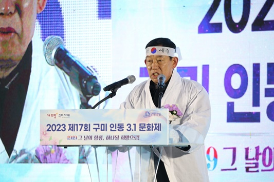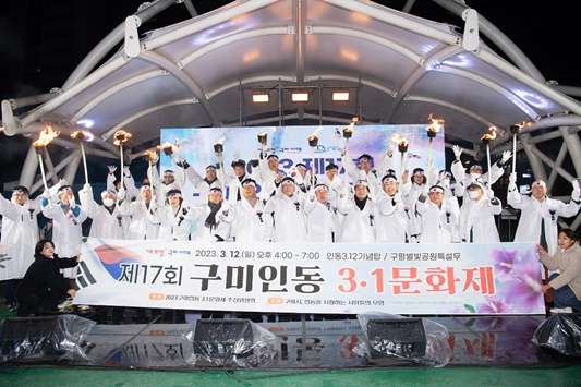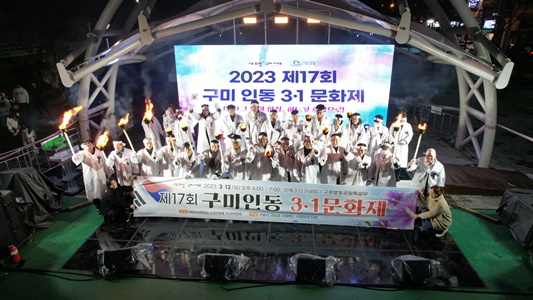 [구미=경북IT뉴스] ‘제17회 구미인동 3․1문화제’가 지난 12일 ‘인동 3․12 독립만세운동 기념탑’ 광장과 구평동 별빛공원에서 개최됐다. 구미시와 경북도가 후원하고 인동을 사랑하는 사람들의 모임이 주관한 이날 행사에는 장상해 인사모회장(추진위원장)을 비롯해 김장호 시장, 안주찬 의장, 시·도의원, 유족, 시민 등 300여 명이 참석했다. 지난 1919년 3월12일 인동지역을 중심으로 펼쳐진 ‘독립운동’을 기념하는 이번 행사는 순국선열에 대한 추모제, 식전공연, 기념식, 독립만세운동 재현 연극, 횃불 퍼포먼스 등의 순으로 진행된 가운데 태극기 탁본 체험, 나라사랑 지도만들기, 독립만세 포토존 등 다양한 부대행사도 함께 열렸다. 장상해 ‘인동을 사랑하는 사람들의 모임’ 회장은 기념사를 통해 “이번 행사에 참석해준 많은 유족 및 관계자 여러분께 감사를 드린다”며 “구미시민은 물론 경북, 나아가 전 국민이 3.12독립만세운동을 기억하고 그 분들의 뜻을 길이길이 이어 가길 희망한다”고 말했다. 김장호 구미시장은 격려사를 통해 “오늘의 구미와 지금의 대한민국은 지역 선열들의 고귀한 희생 덕분임을 잊지 않을 것”이라며 “구미인동 3.1문화제 정신이 우리 구미를 발전시키고 나아가 대한민국을 빛나게 하는 원동력이 되기를 기원한다”고 강조했다. 한편 ‘인동을 사랑하는 사람들의 모임’은 지난 3.1일 사전행사로 3.12독립만세운동을 주제로 한 ‘제11회 전국휘호대회’를 개최, 전국에서 200여명이 참가해 그동안 갈고닦은 서예실력을 겨뤘고, 입상작은 이달 23일부터 26일까지 4일 강동문화복지회관에 전시할 예정이다.