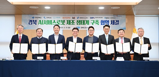 [구미=경북IT뉴스] 구미시와 경북도는 지난 21일 경북도청에서 ‘AI 서비스로봇 제조 글로벌 생태계 구축’을 위한 업무협약을 체결했다.