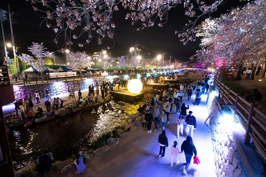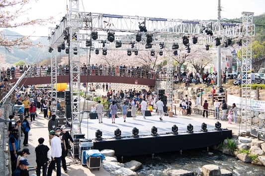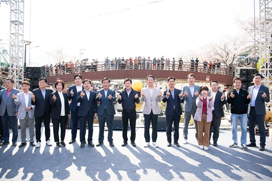 [구미=경북IT뉴스] 구미시는 지난 1일 금오산도립공원 내 금오천 일원에서 ‘2023 청춘, 금오천 벚꽃페스티벌’ 개막식을 개최했다. 이날 개막식에는 2천여 명의 관람객과 구자근·김영식 국회의원, 안주찬 의장, 김용현·김창혁·백순장 도의원, 박세채·김낙관 지역구 시의원 등 여러 내빈이 자리를 함께했다. 축제는 금오천 일원에서 동시다발로 진행되는 다양한 이벤트 및 체험프로그램과 버스킹 선율이 개막당일 3만 시민들의 발걸음을 즐겁게 해줬다. 메인무대에서의 흥겨운 댄스 및 구미시립무용단의 축하공연을 시작으로 지역 밴드팀의 버스킹, 풍선아트 매직쇼 순으로 진행됐고, 특히 시민들의 참여로 진행되는 ‘거리의 노래방’은 시민들의 끼와 열정을 한자리에서 볼 수 있는 자리였으며, 현장에서의 열기가 뜨거워 연장 진행할 정도로 호응이 높았다. 이날 저녁에는 이철우 도지사의 방문으로 현장에서 도·시민의 목소리를 직접 듣는 뜻깊은 시간도 가졌다. 밤마다 야간 조명으로 더욱 아름다워지는 여러 스폿의 포토존과 미디어파사드는 금오천 산책길을 더욱 환상적인 분위기로 연출했고, 야시장을 연상시킬 정도의 청춘아트마켓은 밤늦게까지 축제를 즐기려는 시민들로 북적거려 금오천이 밤낮으로 낭만과 예술이 흐르는 공간으로 탈바꿈했다. 김장호 구미시장은 “흐드러지게 핀 벚꽃이 수놓은 금오천에서 가족·친구·연인 누구나 아름답고 즐거운 추억과 예쁜 사진 많이 남기시길 바라며, 일상에서 시민들이 문화와 예술이 흘러넘치는 낭만문화도시 구미를 체감할 수 있는 다양한 문화정책으로 꾸준히 시민들에게 다가가겠다”고 말했다.