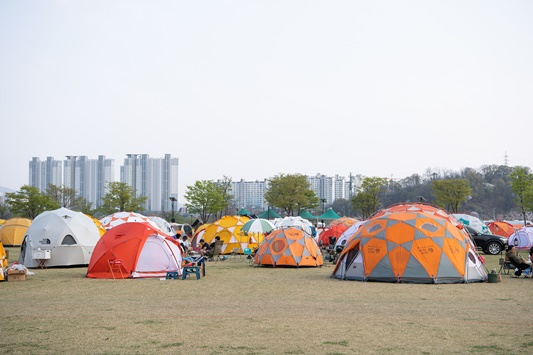 세계 최초 돔 텐트 100동 설치, 장관 이뤄 친환경 캠핑장 추가 조성으로 캠핑 명소로 자리잡을 계획