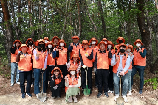 맨발둘레길 입구에서 진행된 나무심기에는 전 직원들이 참여해, 편백나무 묘목 150주, 수국 740본 나무심기를 통한 탄소중립 실천에 동참했다.
