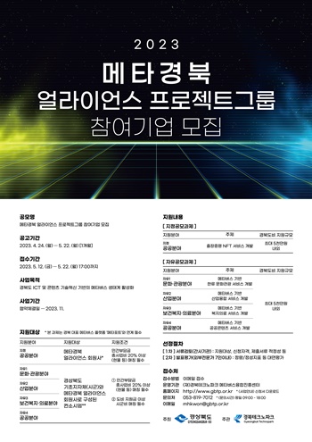 공모기간은 24일부터 내달 22일까지며, 메타경북 얼라이언스에 참여한 기업이면 신청 가능하다.