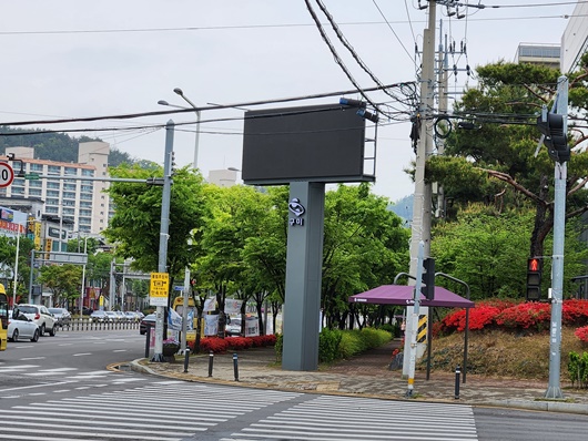 옥계 지하차도 네거리 LED전자 게시대 | [구미=경북IT뉴스] 구미시는 첨단산업 IT도시답게 디지털 선진문화를 선도하기 위해 기존 현수막 게시대의 대안으로 친환경적인 LED전자 게시대를 관내 광평오거리 및 옥계지하차도 네거리 2개소에 각각 설치해 증가하는 행정 홍보 수요를 반영하고 도로변 불법 현수막 근절로 쾌적하고 아름다운 도시환경을 조성한다.