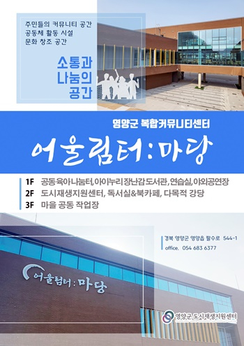 [영양=경북IT뉴스] 영양군 도시재생지원센터는 2일부터 복합커뮤니티센터(어울림터:마당)의 야간(월·화·수) 및 주말 운영을 시작한다.