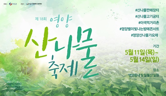 [영양=경북IT뉴스] 제18회 영양산나물축제가 오는 11일부터 14일까지 4일간 영양군청, 영양전통시장, 일월산 일원에서 개최된다.