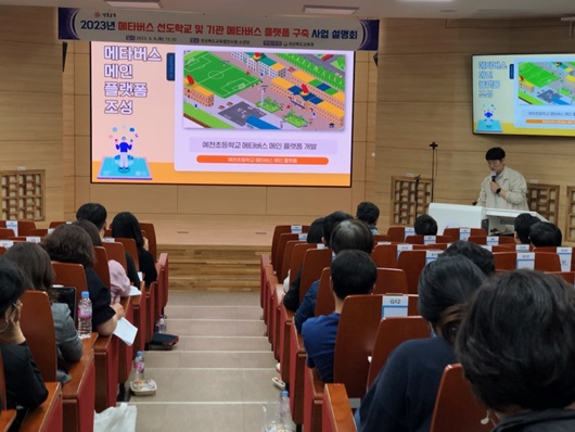 이번 설명회는 메타버스 선도학교 23교(초 9교, 중 4교, 고 8교, 특수 2교)와 기관 메타버스 플랫폼 구축 67개(초 31교, 중 32교, 특수 2교, 교육지원청 1개, 센터 1개)의 업무 담당자가 참석했다.