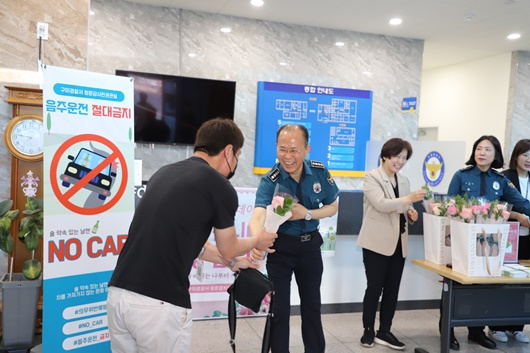 이번 행사는 장종근 경찰서장과 구미경찰서 청렴선도 그룹 초심회가 함께 출근하는 직원을 맞이해 격려와 감사의 마음을 담은 장미꽃과 음료를 전달했다.