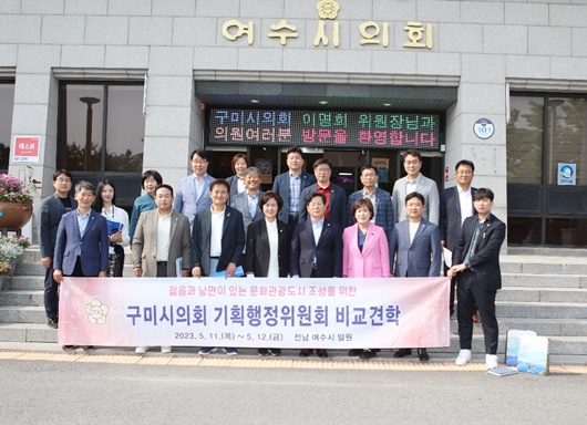 [구미=경북IT뉴스] 구미시의회 기획행정위원회는 제267회 임시회 기간 중인 지난 11일부터 12일 2일간에 걸쳐 문화관광 자원 개발 방안 연구를 위해 ‘여수시의회, 여수아르떼뮤지엄, 여수해상케이블카’를 방문했다.