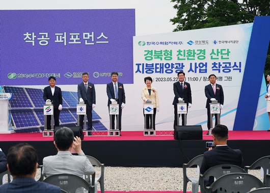 이번 행사는 지난 2월 14일 도청 K창에서 지역 공기업인 한국수력원자력(이하 한수원) 및 한국에너지공단과 함께 ‘경북형 친환경에너지 산업단지 조성’ 투자·지원 협약 체결 후 열린 첫 착공식이다.