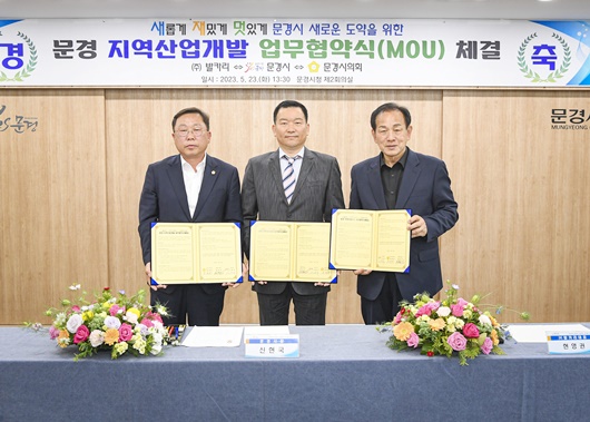 [문경=경북IT뉴스] 문경시는 지난 23일 문경시의회, ㈜발카리와 문경 지역산업개발(문경 역세권 개발 등) 및 글로벌 테마파크 유치를 위한 업무 협약을 체결했다.