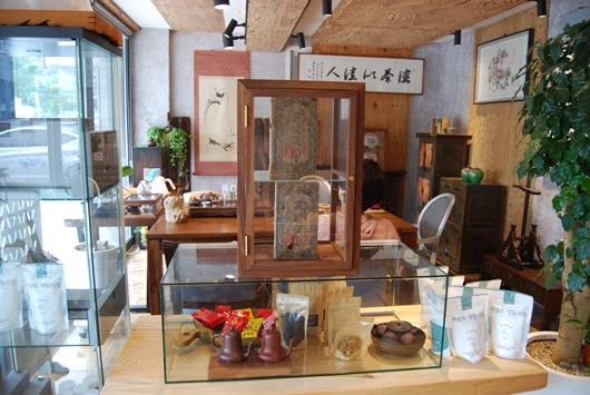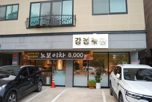 강정차관에서는 피로회복에 좋은 노보이차를 만나 볼 수 있다. 30년 이상 한국에서 건창보관한 차를 노보이차라고 한다.