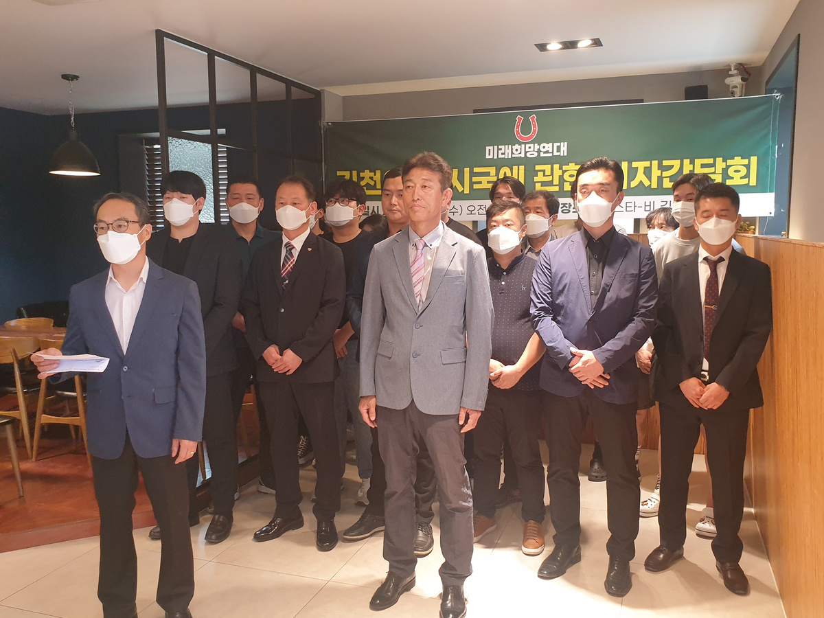 미래희망연대 회원 20여명과 기자,시민 등이 참석한 가운데 인대형 대표는 ‘김천시민에게 드리는 글’이라는 성명서를 발표했다.