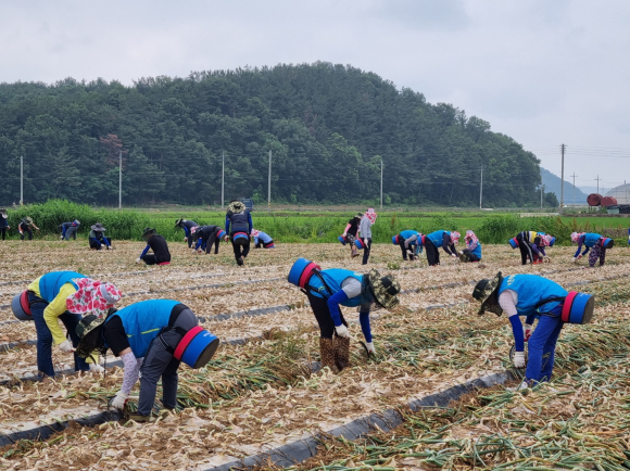 이날, ㈜LIG넥스원(남부지역장 권병현)·농협중앙회 구미시지부(지부장 이재호)·해평농헙 직원들과 여성조직(부녀회, 여성산악회, 고주모) 회원 등 70여명이 참여해 양파 재배 농가를 방문해 일손을 도왔다.