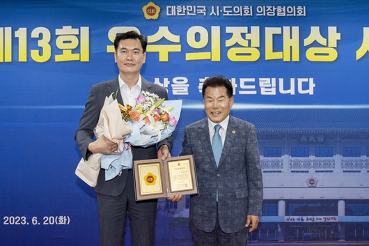 올해로 13회를 맞는 우수의정대상은 대한민국시도의장협의회가 각 시․도의회 의장의 추천을 받아 협의회 차원의 엄격한 심사를 거쳐 지방의회의 능동적이고 선제적인 의정활동으로 지역발전에 크게 기여한 우수의원에게 지방의회상을 정립하고 보람과 자긍심을 부여코자 수여하는 상이다.