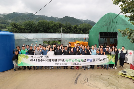 [상주=경북IT뉴스] 상주시의회는 지난 5일 개원 1주년을 맞아 기념행사를 대신해 공성면 소재 포도밭 현장에서 일손 돕기에 나섰다.
