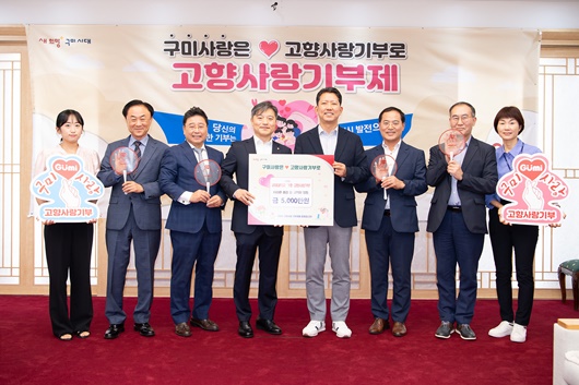 [구미=경북IT뉴스] 구미시는 지난 7일 지역대학 처음으로 구미대학교 이승환 총장과 교직원들이 십시일반 모은 고향사랑기부금 5천만 원을 기탁했다.