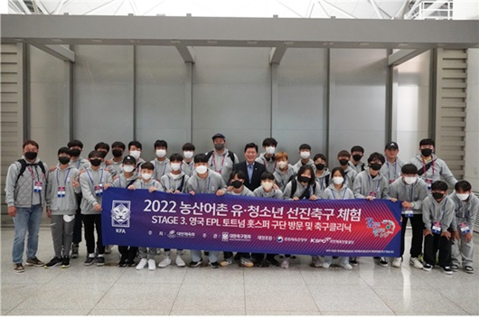 2022년 대회 당시 토트넘 홋스퍼 방문을 위해 출국하는 축구 유망주들과 구자근 의원 |