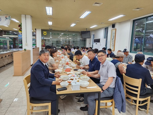 이날 행사는 자매결연을 맺은 구미시 선산읍 생곡리 마을 주민을 초청해 영화감상과 삼계탕을 대접하는 시간을 가졌다.