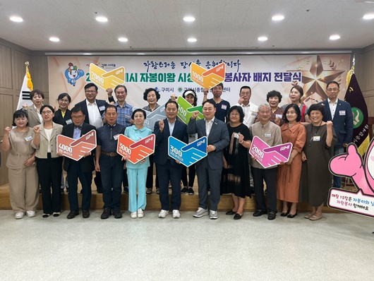 [구미=경북IT뉴스] 구미시는 지난 14일 새마을회관에서 구미시종합자원봉사센터 주관으로 ‘자봉이왕 시상 및 우수 자원봉사자 배지 전달식’ 을 열었다.
