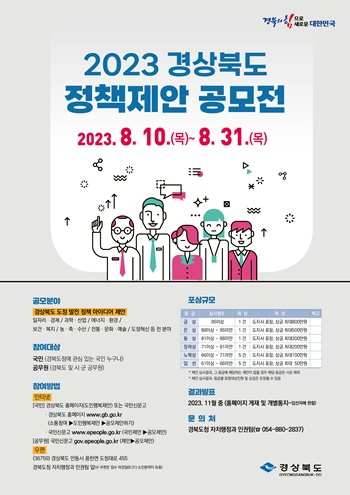 [경북=경북IT뉴스] 경북도는 8월 10일부터 31일까지 ‘2023년 경상북도 정책제안 공모전’을 개최한다.
