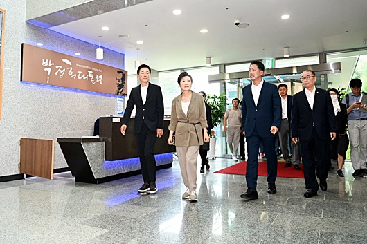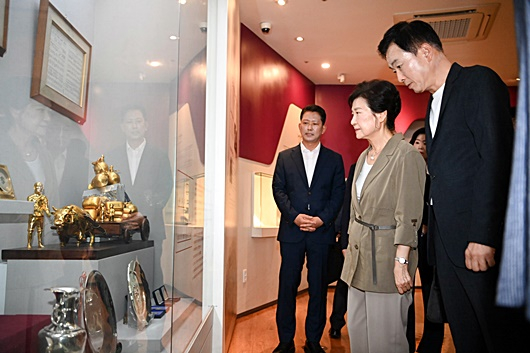 특히, 김장호 구미시장의 안내로 공간이 협소해 모두 전시하지 못해 수장고에 보관돼 있는 유품을 둘러보며, “박정희 대통령의 지팡이와 육영수 여사가 사용하시던 2단 책상과 자개소품함 등을 보고 기억이 난다”며 부모님에 대한 애틋한 추억을 떠올렸다.