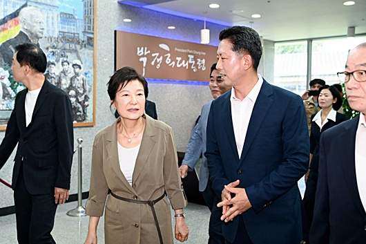 박 前대통령은 “올해가 육영수 여사 서거 49주기이고 아버지 생가를 한동안 찾지 못해 방문했다”고 밝히며 민족중흥관과 박정희대통령역사자료관을 꼼꼼히 둘러봤다.