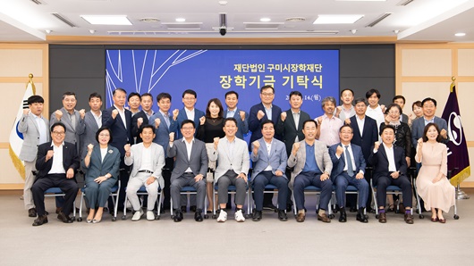 [구미=경북IT뉴스] (재)구미시장학재단은 지난 14일 시청에서 안주찬 시의회 의장과 금융기관, 기업, 단체, 개인 등 10개 팀이 참석한 가운데 총 1억 5백만 원의 장학기금 기탁식을 개최했다.