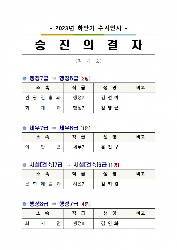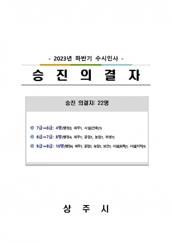 [상주=경북IT뉴스] 상주시는 2023년 하반기 수시인사를 아래와 같이 발표했다.
