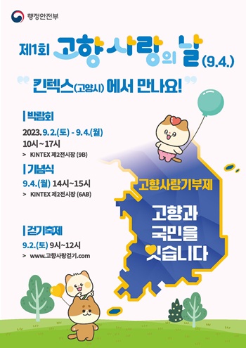 고향 사랑의 날 박람회는 9월 4일을 고향 사랑의 날로 지정해 열리는 국가기념일 행사로 전국 각 지자체의 홍보관을 한 자리에서 볼 수 있으며, 다양한 선물을 받을 수 있는 걷기 축제와 다채로운 공연도 매일 열린다.