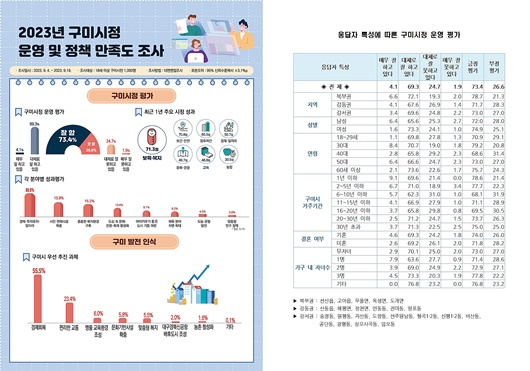 구미시에 따르면, 시가 실시한 ‘구미시정 운영 및 정책 만족도 조사’에서 시민 73.4%가 시정 운영에 만족감을 나타냈다.